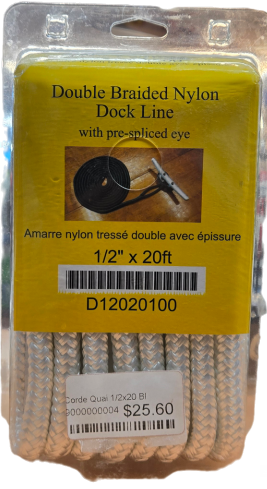 Double Braided Nylon Dock Line 1/2x20 Bl