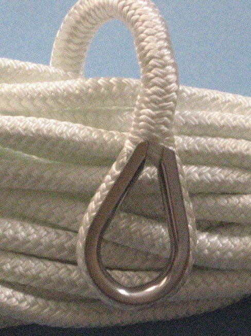 3/4" x 25Ft. Mooring Line BRAIDED MOORING LINES - braided rope with one end spliced with a galvanized thimble.