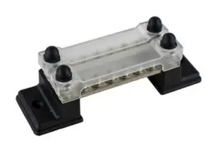These Buss Bars are designed for use with tinned copper marine wire which shares the same expansion rate. This prevents loosening wires and reduces electrolytic corrosion caused by pairing two disparate metals. Includes protective covers. 426681-1 has two buss strips that allow both negative and positive connections on the same block. Constructed of tin-plated brass and ABS with a polycarbonate cover. Installs with two #8 FH fasteners (not included). Maximum: 48VDC, 100A. #8-32 terminals. CE, RoHS compliant.