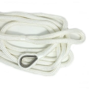 5/8" x 15' nylon double braid mooring bridle with a galvanized thimble spliced in one end, and a 12" soft eye in the other.
