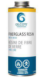 Gelcote International Fiberglass Resin with Wax - 1 Litre 32 oz. Fiberglass resin for marine and automotive applications. Polyester Liquid Resin, Comes with Hardener. Used for final coat(s)