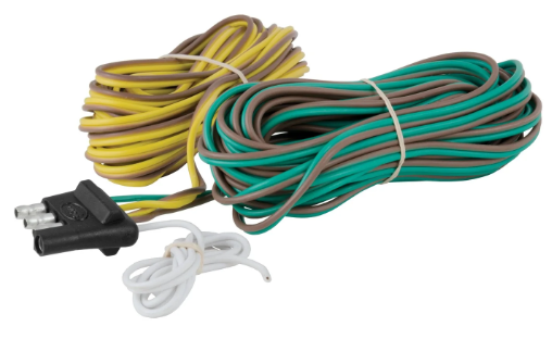 Like trailer hitches and ball mounts, electrical connectors range all over the board in shape, size and capability, but no matter what your trailer's electrical functions are, you need a solid connection to keep the power flowing and ensure safety on the road. CURT electrical connectors are designed and manufactured to give you a reliable connection every time you plug in your trailer. This 4-way flat connector is designed to supply power for tail lights, turn signals and brake lights, as well as a ground connection. It features durable rubber-molded construction and includes 20' of standard color-coded bonded wire and all necessary installation hardware to easily splice into your trailer's wiring system. This 4-way flat connector is a male-end plug, specifically designed for the trailer side of the connection. It is compatible with all 2-wire vehicle systems.