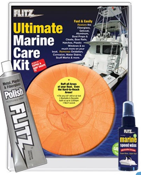 Kit Includes: (1) Flitz Polish-Paste 1.76oz (1) Marine Speed Wax 1.7oz (1) Large 5" Buff Ball
