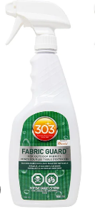 303 Fabric Guard protects all new or cleaned “outdoor” fabrics from water, dirt, grease and sun damage. Outdoor fabrics include canvas convertible tops, cloth automobile seats and carpets, biminis, and boating enclosures. This exceptional protectant is also useful protective product for fine leathers, silk, footwear, and sporting apparel.