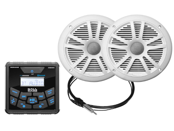 BOSS Audio Systems MCKGB450W.6 Marine Gauge Receiver & Speaker Package – IPX6 Rated Weatherproof