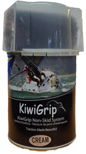 KiwiGrip anti-slip marine deck coating is a revolutionary, safe, durable, non-skid deck treatment that comes out of the can with a thick, yogurt-like, consistency — but spreads quickly and easily with our proprietary roller. KiwiGrip offers a beautiful, consistent, grippy surface. By varying the application technique, the texture can be adjusted from fine to aggressive.