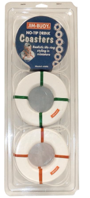 *Realistic life ring styling in miniature! *Resilient foam fits most cocktail glasses, soft drink cans, etc. *Ideal non-spill drink holder about your boat or anywhere else as a distinctive coaster