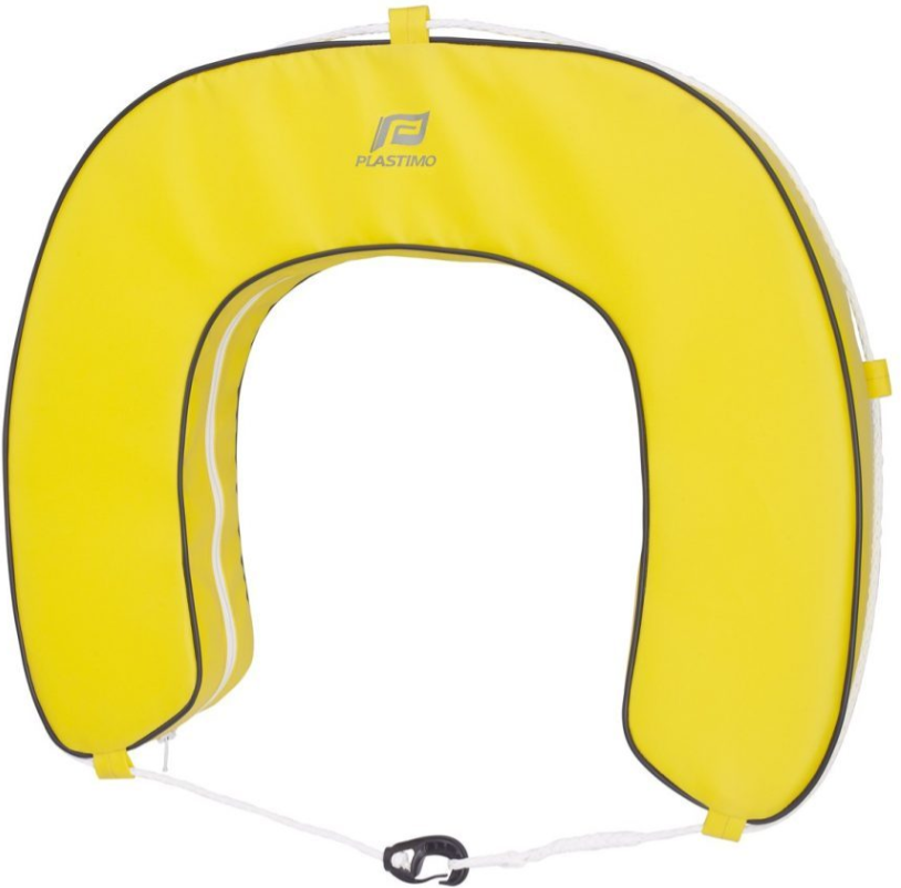 Polyethylene foam buoyancy. Washable, highly resistant cover (1100 decitex, PVC coated). Zip closure. Dimensions : height 53 x width 62 x thickness 11 cm. 147 N buoyancy.