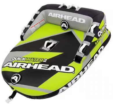 Dual tow points: pull forward for seated position or backward for chariot position. Heavy-duty, double stitched nylon cover, and wrapped, foam filled handles with knuckle guards. Speed Safety Valve, patented, smart technology for quick, easy inflating and deflating. Easy tow rope attachment with Kwik-Connect. Dimensions: 66 in. x 56 in. 340 lbs. max.