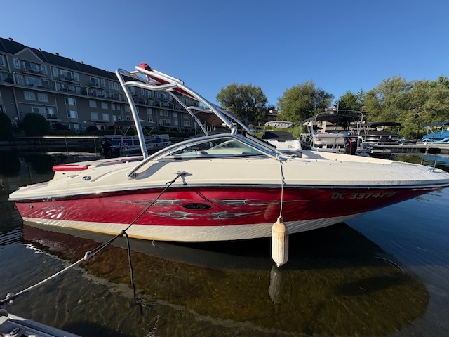 Caractéristiques : Tour de Wake, Cabine de rangement fermé à clef, ensemble de 2 toits bimini, tapis en mousse fait sur mesure, toile rapide.