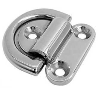 This is a highly polished stainless steel folding pad eye which folds up when you need it and down when you don't.