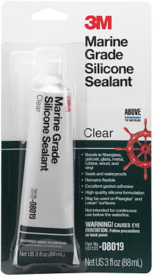 Scellant en caoutchouc de silicone qui ne s'affaisse pas et durcit à l'humidité. Reste flexible avec une excellente résistance au milieu marin. Adhère au métal nu et peint, à la fibre de verre, au verre, aux bois non gras et à de nombreux plastiques et caoutchoucs abrasés. Idéal pour les applications d’étanchéité des têtes et des cuisines. Excellent adhésif pour joint et matériau de joint formé sur place. Tube de 3 oz - Transparent
