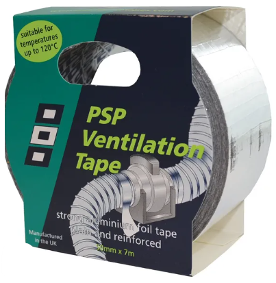 Ruban adhésif aluminium résistant, uni et renforcé. Convient à des températures allant jusqu'à 120 °C. Dimensions : 50 mm x 7 m