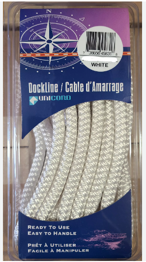 Ligne de quai en nylon double tresse 1/2" X 25', blanc
