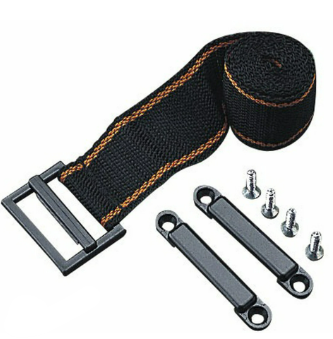 Sangle de boîtier de batterie, Noir, Polypropylène tissé, Longueur de 38 pieds x largeur de 1-9/16 pouces, Avec boucle en nylon/ Deux supports/ Quatre attaches 8 FH, Unité