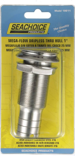 Les raccords traversants anti-goutte Seachoice Mega-Flow sont dotés d'un collier anti-goutte sur la face pour éviter les traces de coque et d'une construction à paroi mince pour assurer un débit d'eau maximal.