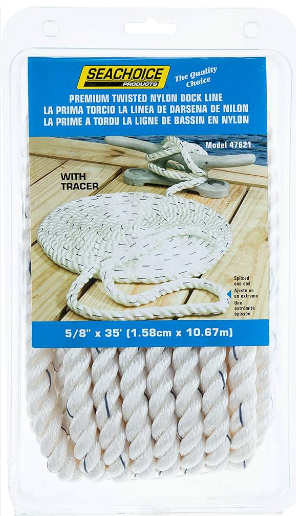 Cette ligne de quai en nylon torsadé à 3 brins Seachoice Premium avec traceur est durable et fiable et contribue à garantir l'amarrage le plus fiable. Cette ligne blanche à 3 brins avec un traceur bleu est conçue pour absorber les chocs soudains et est très résistante à l'abrasion, à la pourriture, aux huiles, à l'essence et à la croissance marine.