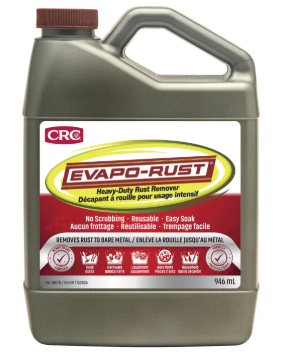 Evapo-Rust® est un décapant à base d'eau, non corrosif, qui restaure vos trésors rouillés. Avec Evapo-Rust®, vous pouvez enlever la rouille jusqu'au métal nu sans avoir à poncer ou à frotter. Il est sans danger pour toutes les surfaces et n'abîme pas le cuivre, le laiton, l'aluminium, le plastique, le caoutchouc, ou le vinyle. La solution est prête à l'emploi, sans qu'il soit nécessaire de la mélanger. C'est facile - il suffit de tremper, de rincer, et de réutiliser.