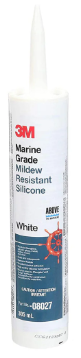 Mastic silicone de qualité marine 3M™ 08027, cartouche de 1/10 gallon, couleur - blanc. Reste flexible avec une excellente résistance à l'environnement marin. Adhère au métal nu et peint, à la fibre de verre, au verre, aux bois non gras et à de nombreux plastiques et caoutchoucs abrasés. Idéal pour les applications d'étanchéité de têtes et de cuisines. Également un excellent adhésif pour joints et un matériau de joint formé sur place.