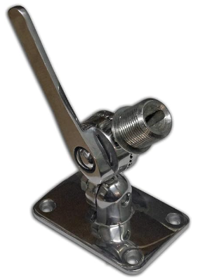 Support à cliquet robuste en acier inoxydable à 4 voies. Filetage 1″-14, avec fente pour câble pour un passage facile des câbles coaxiaux RG-8X et RG-58. Passage de câble coaxial intégré. Emballé sous blister