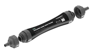 Le filtre d'aération pour réservoir de rétention Eco est fourni avec des raccords pour tuyaux de 5/8", 3/4", 1" et 1 1/2" de diamètre intérieur. Taille unique.