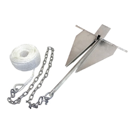 Contient : *Ancre Fluke de 8 lb, 9 lb. *(2) manilles d’ancre galvanisées de 5/16 po. *Chaîne d’ancre galvanisée de 5/16 po x 6 pi. *Câble d’ancrage 100 % nylon de 3/8 po x 100 pi à 3 torons avec cosse d’ancre.