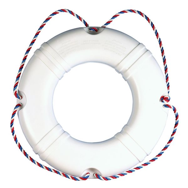 Bouée annulaire récréative/décorative Dock Edge, 19 po, bouée annulaire récréative/décorative blanche, 19 po Comprend une corde rouge, blanche et bleue Idéal pour les décorations de piscine, de chalet ou sur le thème nautique