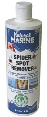 ECOMAR Spider Spot Remover (450Ml) – 5056. Works on fiberglass, aluminum, painted surfaces and vinyl to remove spider spots, black streaks, mildew and leaf spots – inside and out. An environmentally safe product. 450mL.