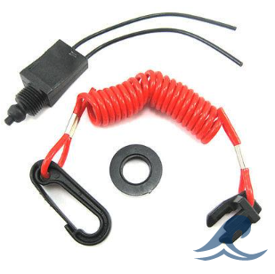 Sierra MP28870 OMC Kill Switch et lanière. Caractéristiques : Position fermée avec cordon retiré. Coupe l'allumage lorsque le cordon est tiré. À utiliser avec des allumages conventionnels ou magnéto.