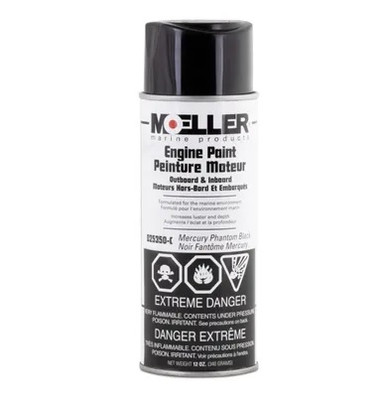 Peinture moteur – pour une couverture totale du moteur, utilisez de la peinture moteur à séchage rapide. Cette laque acrylique résistante à la chaleur et aux solvants est formulée pour répondre aux besoins des moteurs de bateaux à puissance prolongée. Couleur assortie à la couleur d'origine de votre moteur. À utiliser sur tous les moteurs hors-bord et in-bord, les applications de transmission en Z et d'unités inférieures. 12 onces. Mercure Fantôme Noir