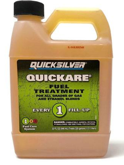 Mercury Quicksilver Quickare est un traitement de carburant pour toutes les qualités de mélanges de gaz et d'éthanol. Ce traitement de carburant recommandé par les constructeurs maximisera les performances de votre moteur et stabilisera votre carburant. Il est recommandé d'utiliser Quickare à chaque plein.