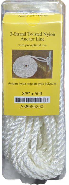 Ligne d'ancrage en nylon torsadé à 3 brins avec œillet pré-épissuré 9,5 mm x 15,2 m