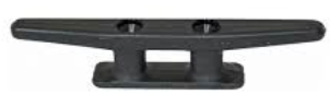 Cale fabriquée en nylon noir résistant aux UV et dotée d'une base plate et de deux trous de fixation centraux à travers les poteaux de la cale.