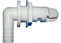 Tête d'aérateur 90 degrés avec vanne d'arrêt, 3/4" (blanc) Trou de montage : 1-1/16" Tuyau : 3/4" Description : Bride fixe Épaisseur max. : 5/8"