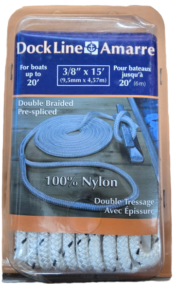 Ligne 100 % nylon double tresse pré-épissée de qualité supérieure, prête à l'emploi, 3/8 po x 15 pieds
