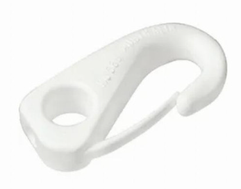 Crochets pour cordon de serrage en nylon blanc avec clip à ressort.