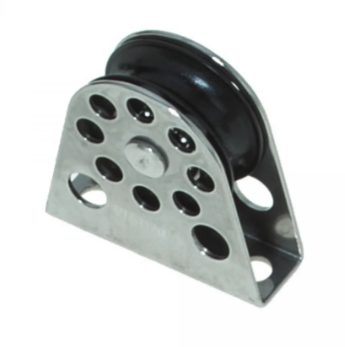 Spécifications : *Taille de la poulie : 28 mm *Taille maximale du cordage : 8 mm *Hauteur totale : 51 mm *Poids : 24 g *Diamètre du trou : 5 mm *Espacement des trous : 29 mm *Charge de rupture : 750 kg