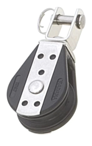 Diamètre de la poulie : 28 mm Diamètre maximal du cordage : 8 mm Hauteur totale : 51 mm Poids : 24 grammes Charge de rupture : 750 kg Charge de travail maximale : 150 kg
