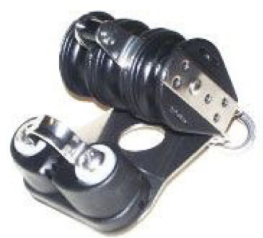Poulie triple roulements à billes avec ringot et taquet coinceur à billes en fibre de carbone.